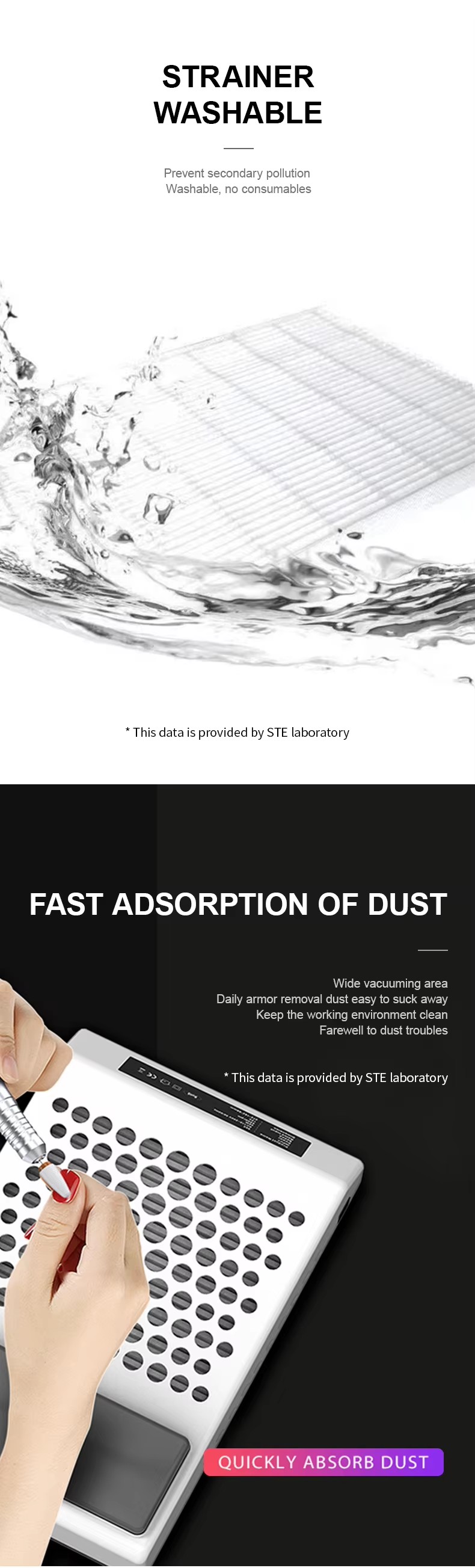 Ngwaahịa siri ike adcorption nke ntu na-adịghị akwụsị ájá, debe countertop dị ọcha ma na-adị ọcha, ngwa ngwa anaghị akwụsị uzuzu oke ike.